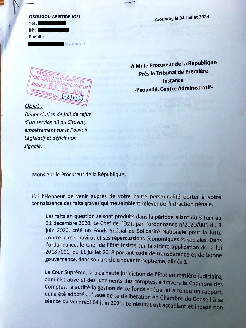 | N° Utilisateur | Nom | Prénom | Jour | Heure | Pays de résidence | Région | Département | Arrondissement | Représentation diplomatique ou consulaire | Numéro d'enregistrement de la plainte ou dénonciation | Photo de la décharge sensurée | |